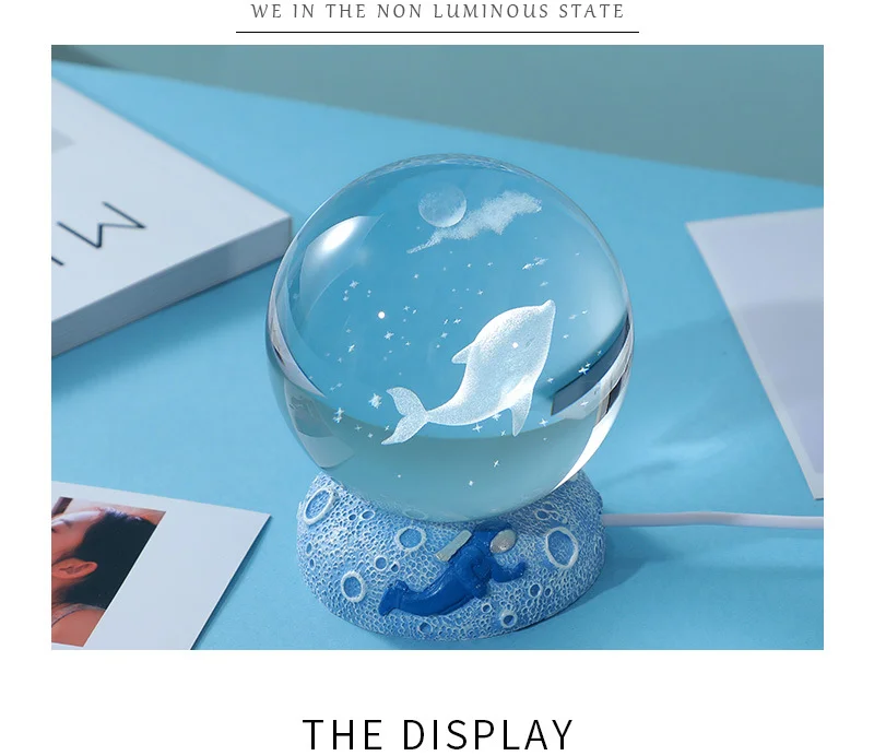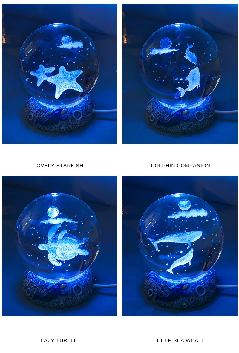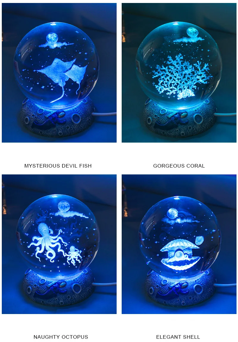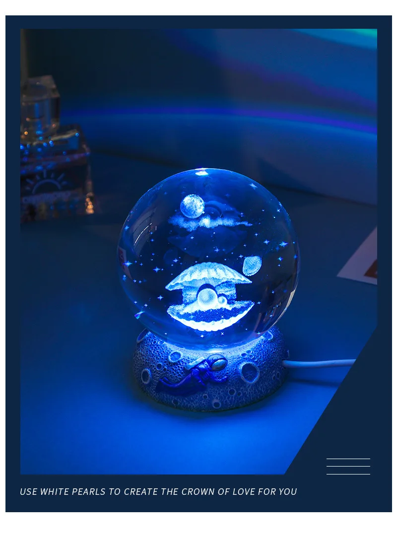 This elegant crystal ball night light features a 3D engraved design that creates a stunning visual effect. Set on a luminous resin base, it adds a touch of magic and sophistication to any room. Perfect as a birthday gift or as a unique home decor piece, this handcrafted ornament radiates a gentle, calming glow.
